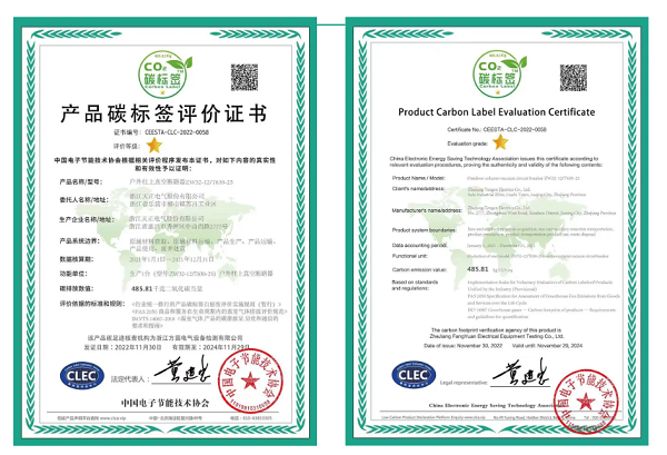 此次碳标签评价表明,龙8唯一官方网站电气生产的户外柱上真空断路产品,在碳排放大数据方面按国际通行惯例推进,并具备一定的优势,对促进产品全供应链的温室气体减排,达成“双碳”目标具有积极作用。此外,龙8唯一官方网站还获中国电子节能技术协会颁发的低碳产品供应商证书。